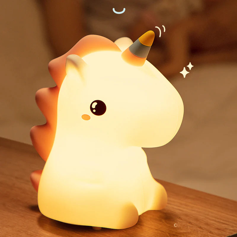 Introducing Sparkles, the magical unicorn night light that will add a touch of whimsy to your child's bedtime! With its enchanting design and soft, calming glow, **Sparkles** creates the perfect atmosphere for your little one to feel safe and relaxed before sleep. Made from durable, child-safe silicone, this night light is built to last and provides comforting light night after night.